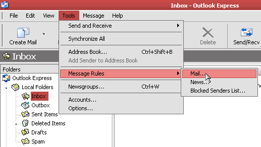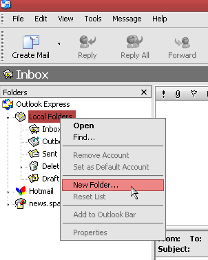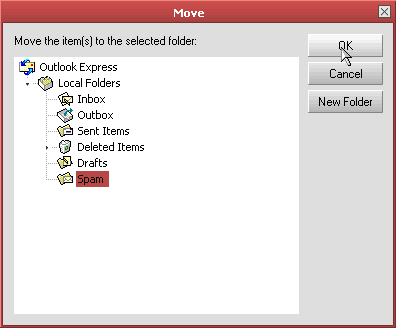 - In Outlook Express, create a new folder at the top level called Spam. This is where the email marked as spam will be stored.